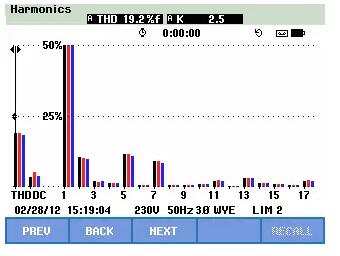 FLUKE 435-II可以直接在仪器上查看谐波数据,也能够通过Powerlog分析软件打开记录的数据包,以观察并分析谐波的变化趋势。