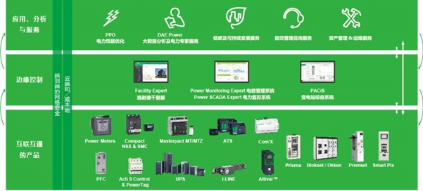施耐德电气EcoStruxure配电利用在互联互通的产品,边缘控制,以及应用、分析和服务三个层面的创新,形成从连接、收集到分析、行动的闭环智能配电新架构,覆盖数据中心建设和运行所有电力领域和管理链各个环节,通过开放式集成、实时操作分析以及更高级别的网络安全,帮助用户充分利用智能化和数字化的新机遇,实现更安全可靠、高效、可持续性和互联互通。