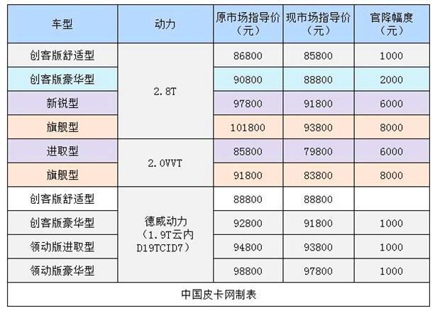 今年年初,江淮再次推出官降优惠,最高降幅达到8000。江淮皮卡这种举措传递出了厂家的诚意,打造出了质优价低的品牌印象,特别契合皮卡车主注重实用,注重性价比的心理。因此,获得了优异的市场反馈。指导价可见下表: