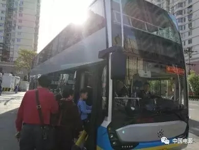 (10路线开启运营,市民乘坐银隆纯电动双层客车)