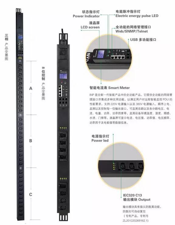 INP系列是昌遂全新一代智能产品中的全功能产品,提供全功能的网络管理接口并集成多种实用功能,以满足用户对远程智能监控PDU的性能需求。