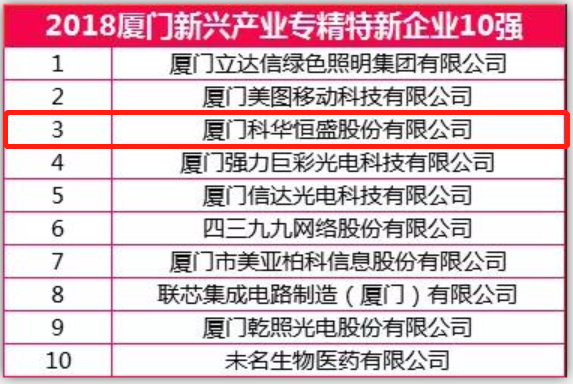 在此次评选中,科华恒盛荣登“2018厦门企业100强”及“2018厦门新兴产业专精特新企业10强”两个榜单。