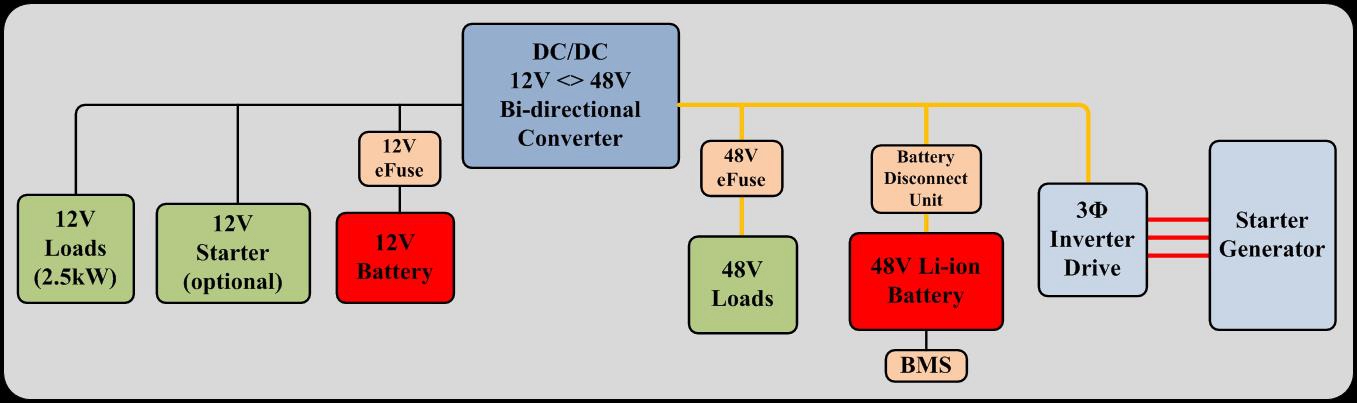 适用于轻度混合动力汽车的48V汽车系统