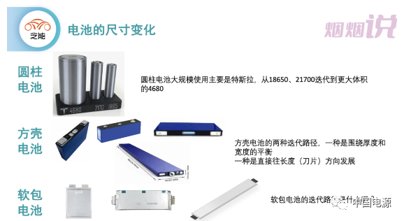 首先是电芯的尺寸和容量变大:不仅是圆柱,软包和方壳,都是越来越大。