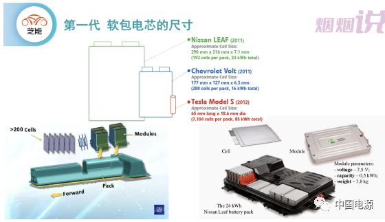 从产线和设计来看,软包电池的尺寸和体积灵活多变,可根据不同车型空间、底盘需求进行定制,为未来纯电动汽车整车布局和结构设计提供方便。因此在历史上,第一个阶段,主要是由通用汽车和日产汽车分别来定义电池尺寸。
