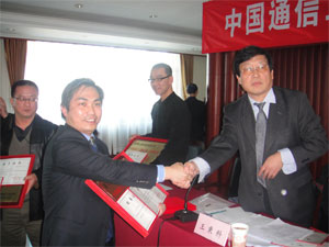 会议由主席台的领导向中国通信工业协会向第六届理事会会长、副会长单位、副会长,常务理事单位、常务理事和理事单位、理事们颁发了牌匾和证书。并对老领导的支持表示感谢,感谢他们对协会工作作出的杰出贡献,大会为欧阳忠谋会长和孙锋秘书长发了荣誉证书,最后全体会议代表合影留念。