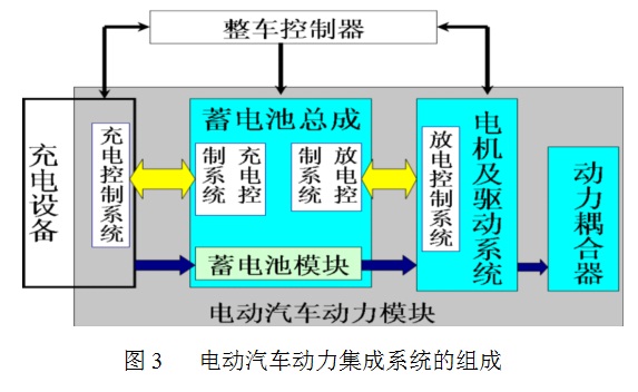对于电动汽车应用,如图3,蓄电池管理系统则分别存在于充电设备、蓄电池模块及总成及电机和驱动器组成的电动汽车动力集成系统之中。