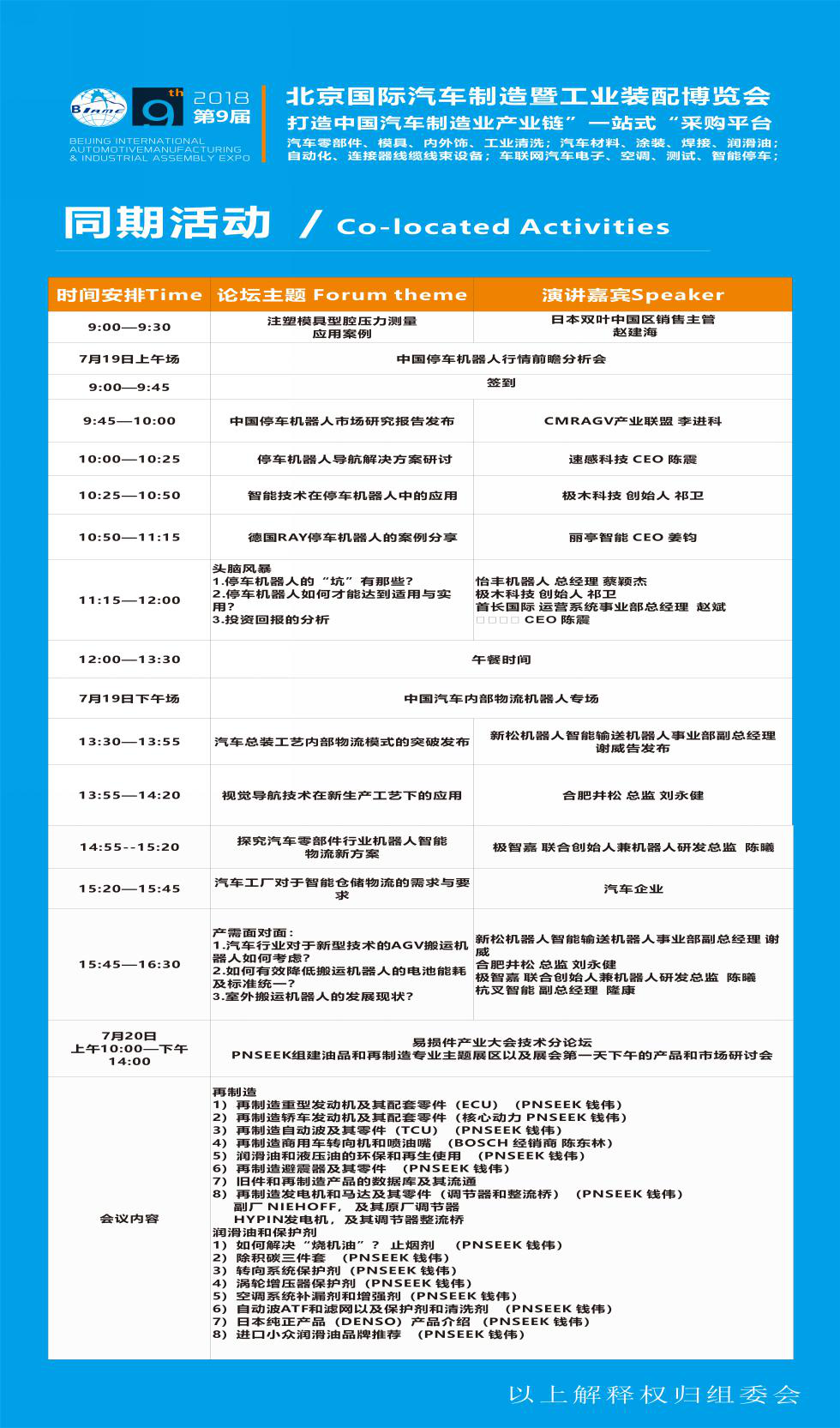 展会将同期举办“全球汽车前沿技术发布会”、“汽车技术创新论坛”、“中国汽车易损件更换与保养”、“汽车智能工厂与机器人高峰论坛”等多场高水平的会议论坛。