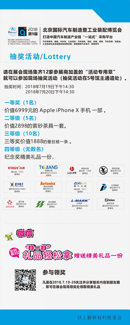 汽车制造业是我国工业的主导产业。作为全球最大的汽车产业消费国,为相关汽车材料、零部件及装备企业提供了广阔的应用消费市场。在此诚邀汽车业各界人士参观指导本次活动,现场更有机会赢取.