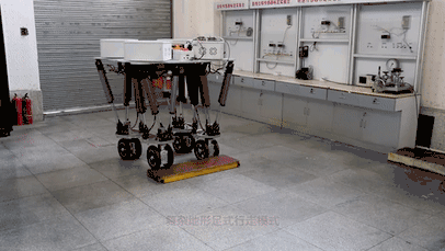 然后,团队的人突发奇想,将该运动平台倒置,装上轮子,便有了现在“北理哪吒”的雏形。所以北理哪吒是一款轮式、足式和轮足复合式运动的机器人平台。轮式结构让他在平面运动时,运动速度远高于足式机器人;足式运动又让它能通过很多轮式机器人不能跨越的障碍。更加神奇的是,独特的多自由度的腿部结构,让“北理哪吒”解锁了各种各样不同的运动模式。