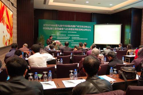 2009年12月12日,中国电源行业投融资与企业股权增值策略高峰论坛在北京希尔顿逸林酒店隆重举行。本论坛是在国家工业和信息化部、北京市经济和信息化委员会的指导下,由中国电子商会电源专业委员会、北京电源行业协会、中担投资信用担保有限公司、北京电源行业投融资发展服务促进联盟主办,得到了美国国际证券公司(AUS)、广东创富担保有限公司的特别支持。