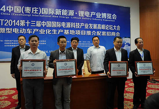 当日下午,还举行了全国微型电动车产业化生产基地项目推介招商大会,中国微型电动车产业技术创新联盟与北控集团北京京仪敬业电工科技有限公司、枣庄高新区三方签署合作协议,同意联合在枣庄高新区筹建年产能10万辆的“微型电动车产业化生产示范基地”。石家庄京石新能源汽车有限公司、北京利尔德电气投资有限公司也分别与北控集团北京京仪敬业电工科技有限公司、中国微型电动车产业技术创新联盟签署合作协议,分别筹建年产能10万辆的“微型电动车产业化生产示范基地”。