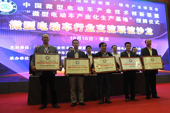“联盟微型电动车生产示范基地车型推荐产品“颁奖仪式