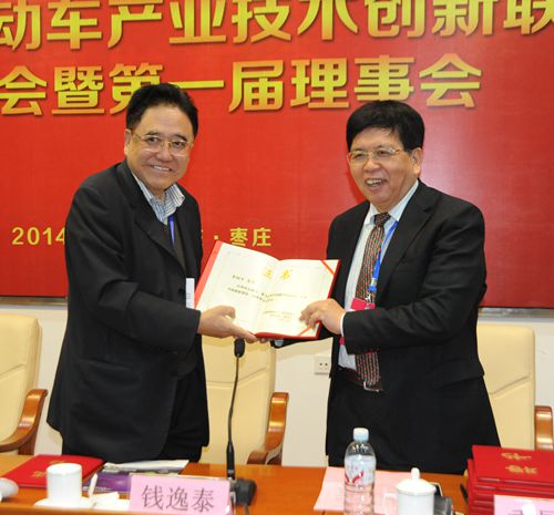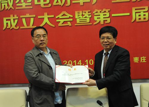 10月16日上午,中国微型电动车产业技术创新联盟成立大会暨第一届理事会在山东枣庄召开。中国科学院院士、中国化学会顾问、钱逸泰教授出席,枣庄市副市长王新宁致辞,北京大学其鲁教授、北京汽车行业协会副秘书长徐华、中国科学院电工技术研究所陈永翀教授在主席台就座。在会议上,中国电源工业协会理事长、工信部电子信息产品司助理巡视员季国平当选为联盟理事长,有关领导在会议上向到会的副理事长及秘书长、副秘书长颁发了证书。