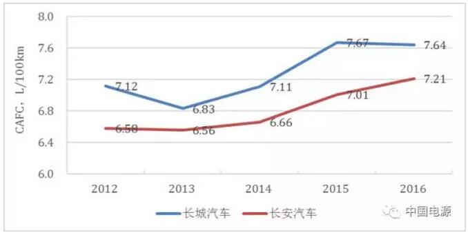 国内两最大SUV生产企业——长城汽车与长安汽车,2016年产销近百万,遗憾的是过去四年两家企业的油耗非但没有下降,还不断攀创新高,2016年两企业油耗均不达标。它们的产品结构朝着大型化的SUV、MPV方向发展,而节能技术的应用力度,远远没能抵偿因重量化所引起的油耗增长。