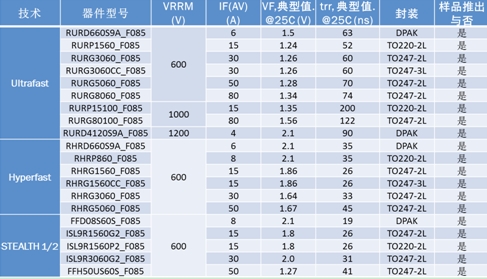 快恢复版本主要通过载流子寿命控制来实现,主要特性有:快速体二极管、小的Qrr和Trr、强固的二极管、更好的可靠性、软谐振开关,主要应用于LLC、LCC、双有源桥式DC-DC等拓扑。