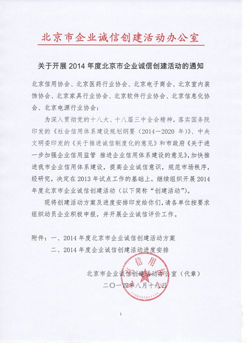 “关于开展2014年度北京市企业诚信创建活动”的通知